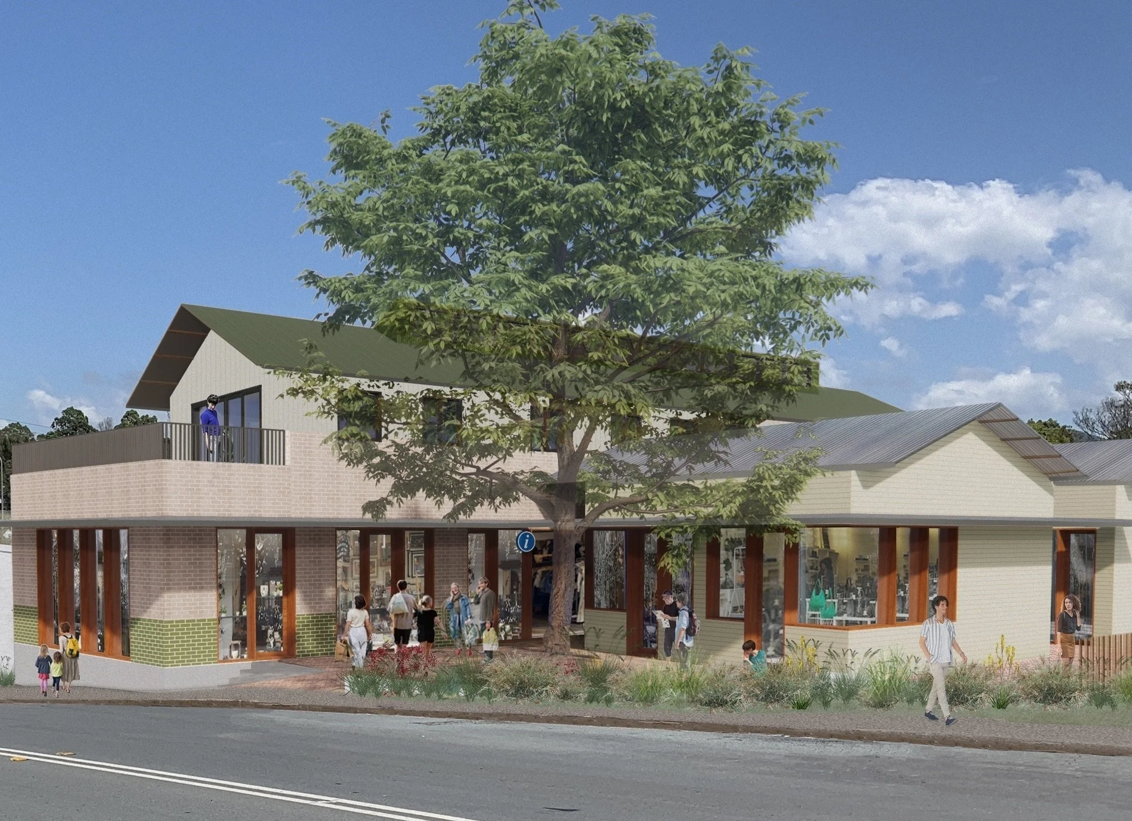 The village square, re-establishing the buildings lost on the western side of Cobargo’s main street, will act as a hub for the town centre and includes a tourist information centre, co-working space, community wellness hub and 5 retail spaces. The Village Square complex will also include 2 two bedroom apartments on the upper level. Architectural Plans Village Square